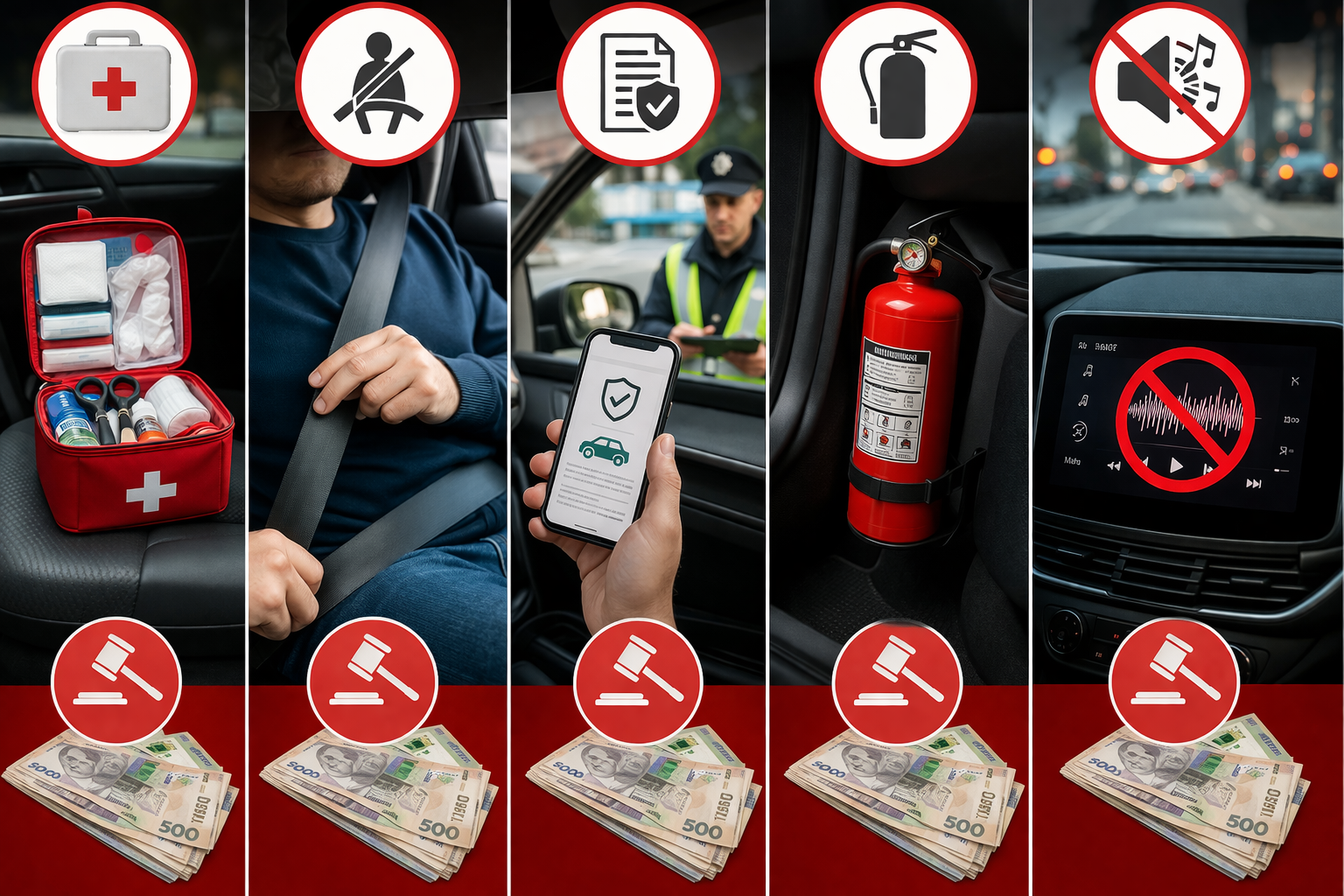 Повний розбір штрафів ПДР: аптечка, ремінь безпеки, автоцивілка, вогнегасник та інші вимоги