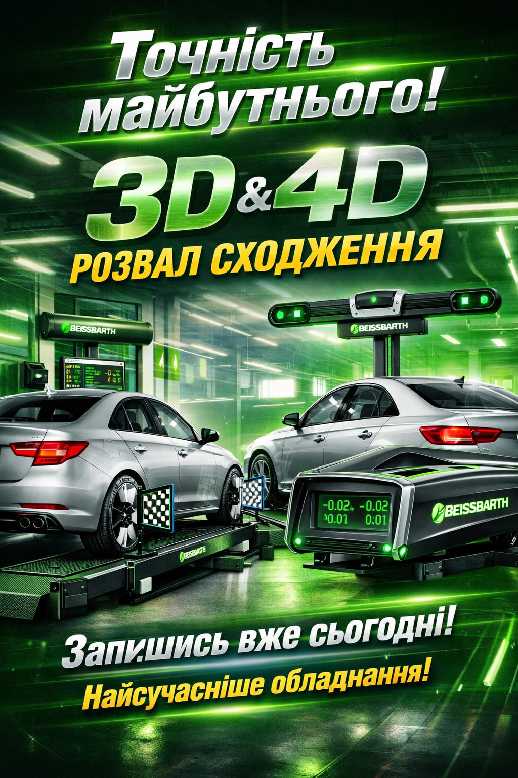 3D-стенд Beissbarth — це цифрова система нового покоління, яка виконує повну перевірку геометрії підвіски, точне калібрування датчиків, виставлення керма та контроль положення коліс у реальному часі. На відміну від застарілих оптичних або лазерних систем, 3D-технологія забезпечує міліметрову точність, стабільні результати та мінімізує людський фактор.