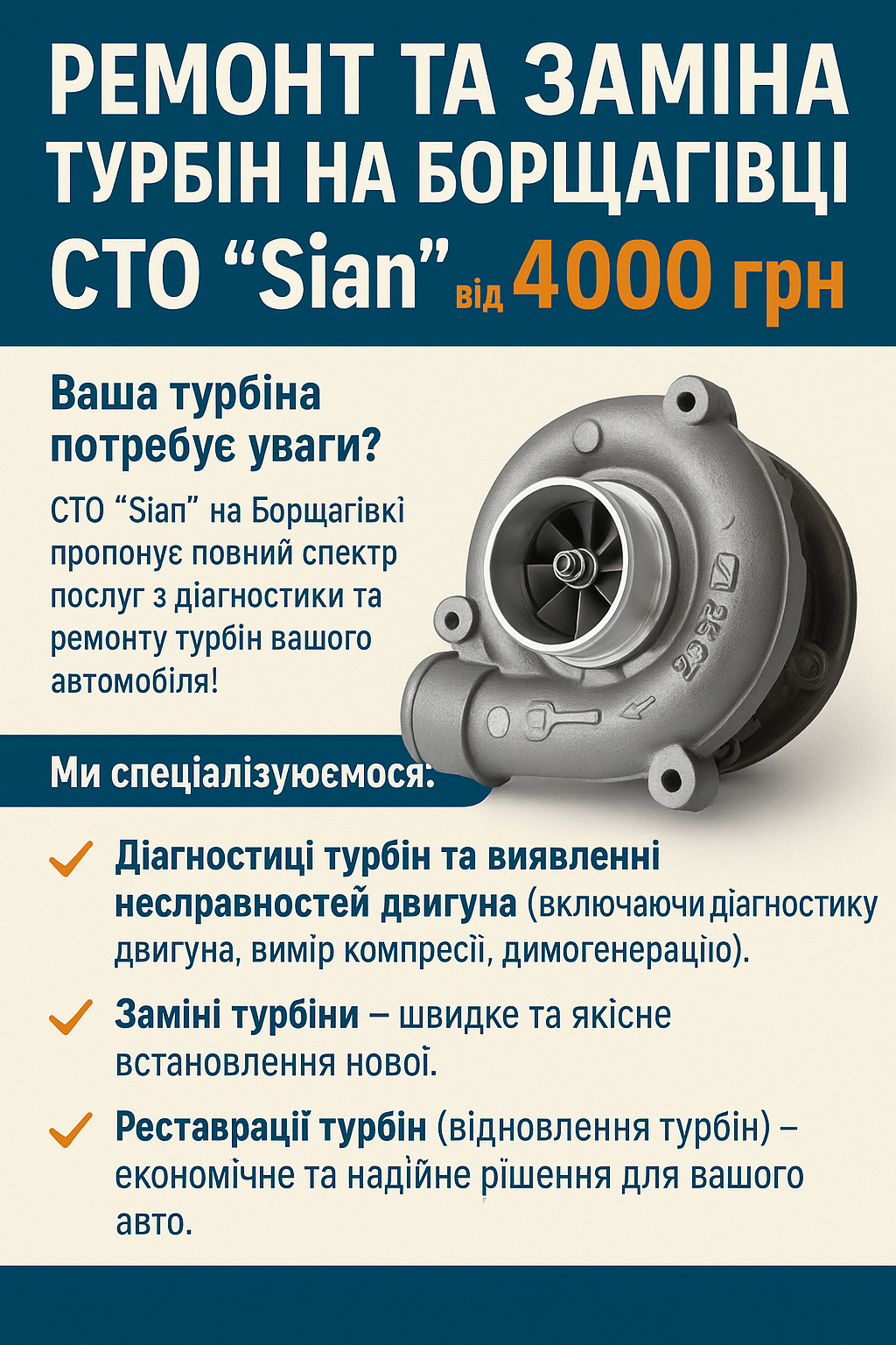 Ремонт та Заміна Турбін на Борщагівці – СТО "Sian" від 4000 грн.